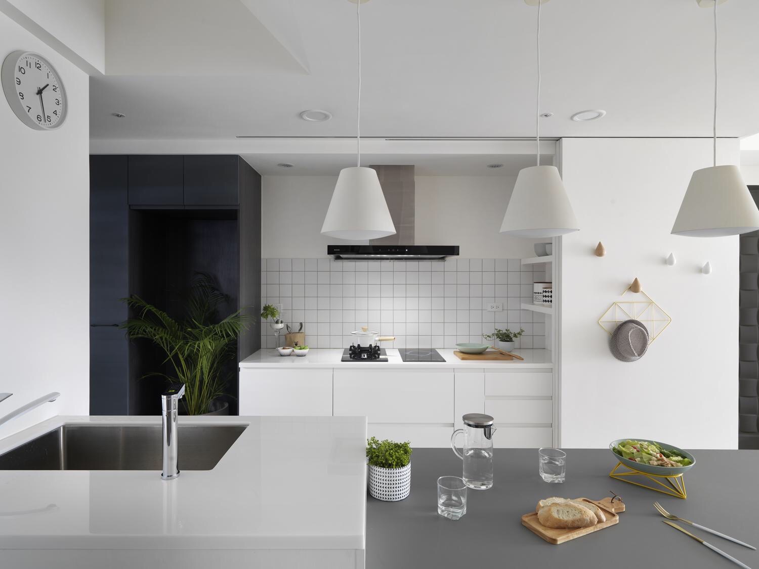 厨房绿植点缀极简的生活。