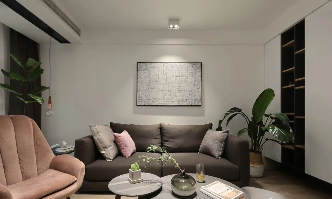客厅简约舒适,无主灯设计保留开阔层高,视觉上也更清爽。