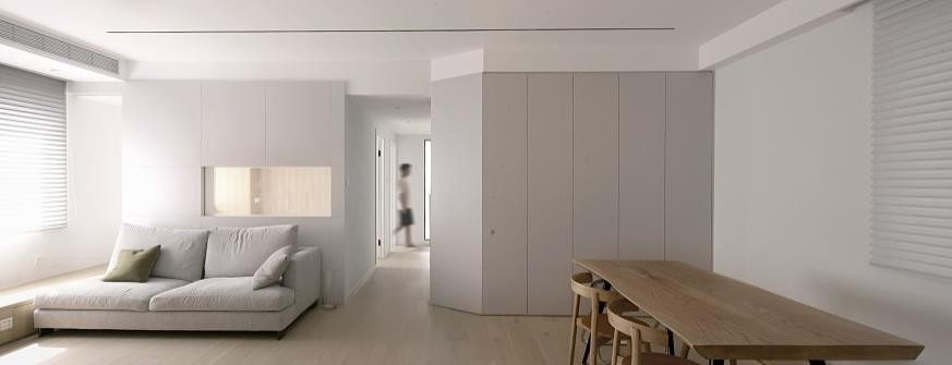 贯穿式的储物地柜,似于是两个空间的桥梁,将两个空间连接起来。
