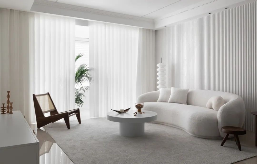 采取极简净白的硬装空间,营造出一种独特的极简轻奢风格氛围