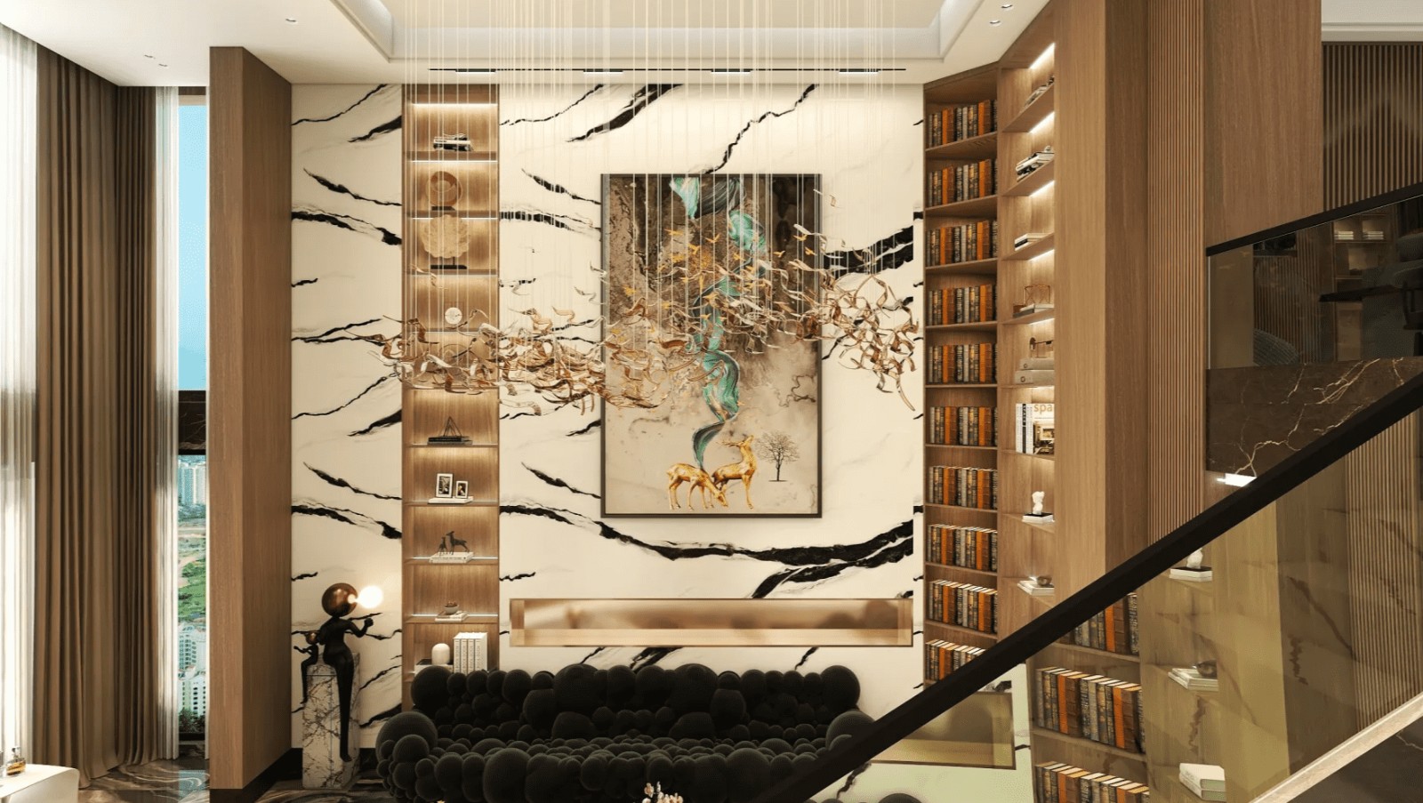 设计师将每一寸空间都运用到,石材与木饰面的结合,碰撞出不一样的品质