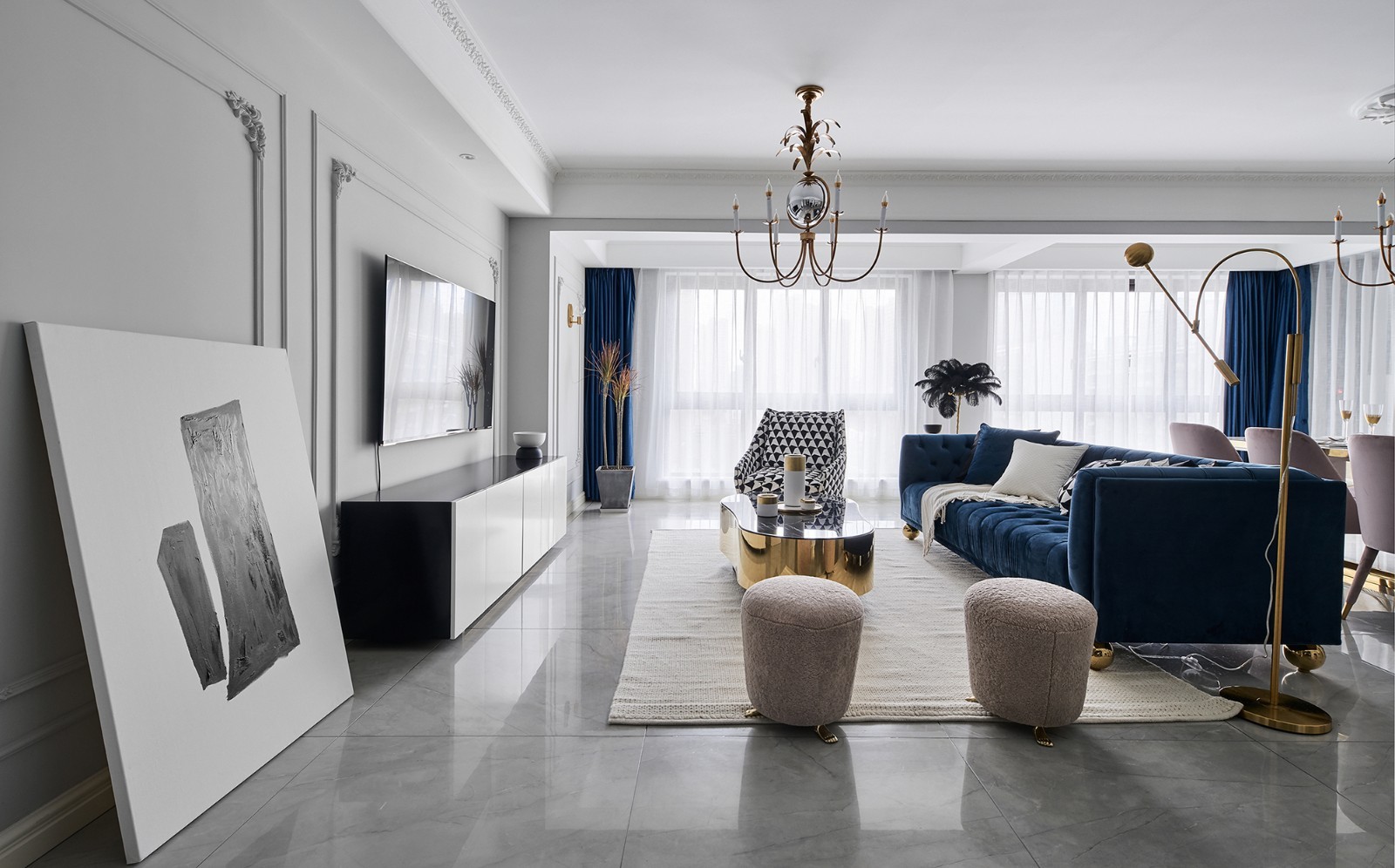 轻纱般的阳光穿过硕大的落地窗洒入屋内时,斑驳的光影,充满灵动与恬静,同时又像精致的滤镜,使家具与艺术品显得更加出彩。
