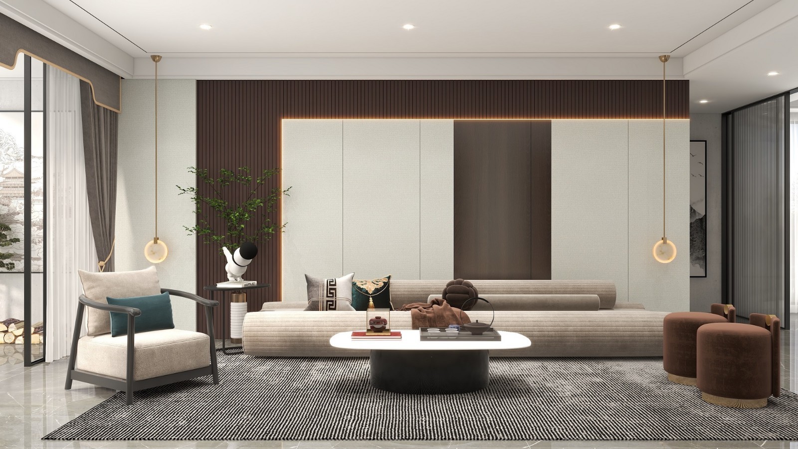 庄重又典雅的背景搭配吊灯