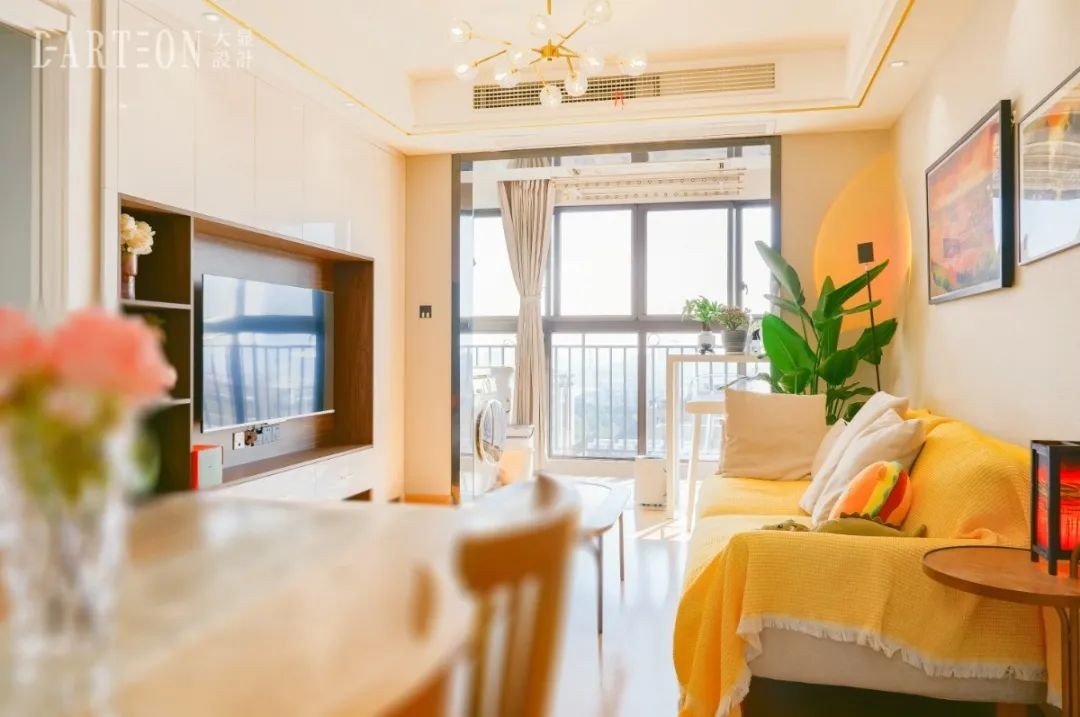 一整面电视背景柜,***化增大储物量,无把手设计保证空间的干净整洁;沙发背景墙适当留白,搭配法式浪漫装饰画,温软暖居的氛围感油然而生。