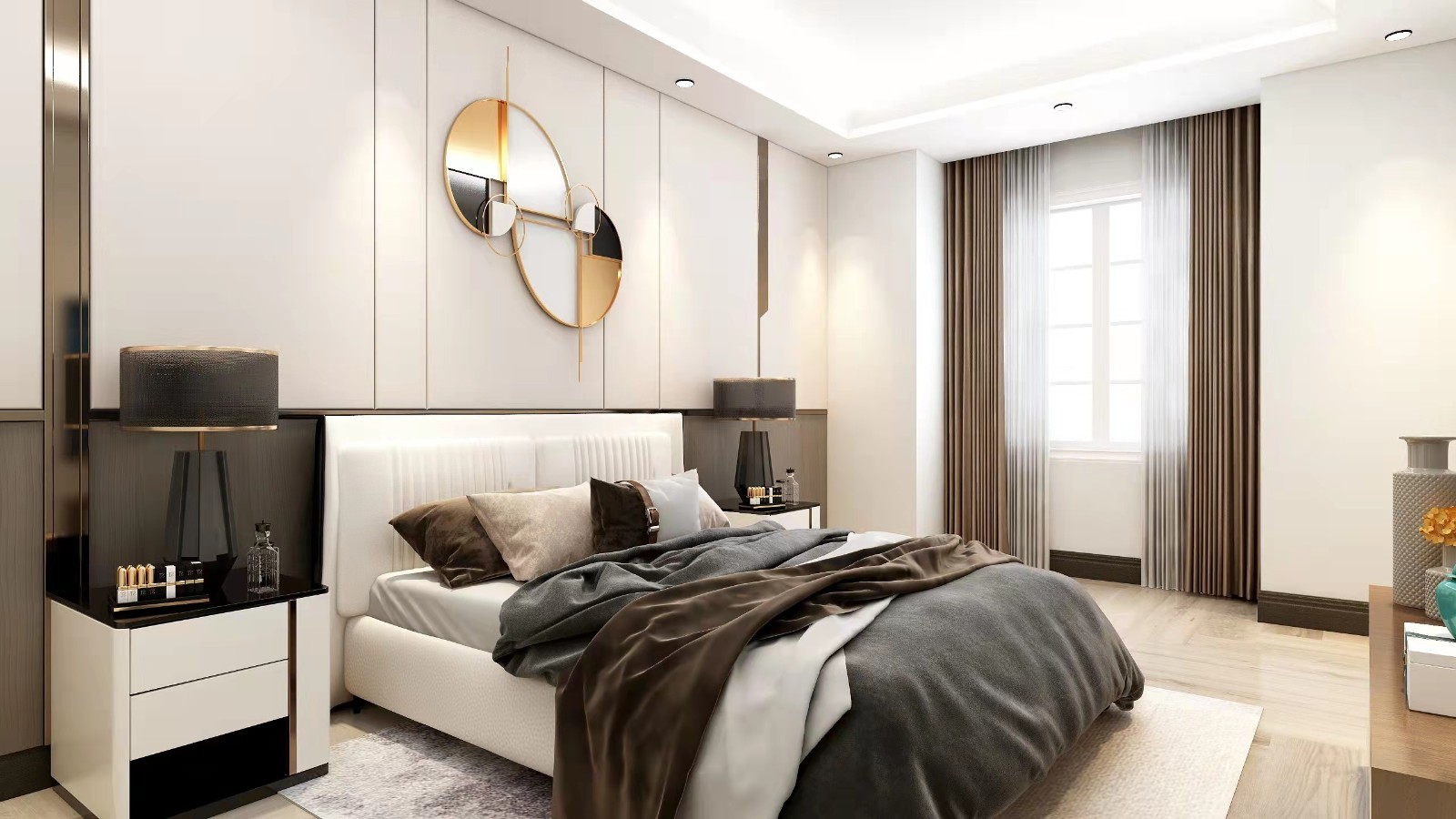 主卧是主人平时休息的主要空间在设计上多用暖色调促使空间显得比较舒适。主卫主要体现了家庭的温馨感,重视私密感一般选用暖色的灯光。可使用一些贵重的装饰材料,如大理石等天然石材。