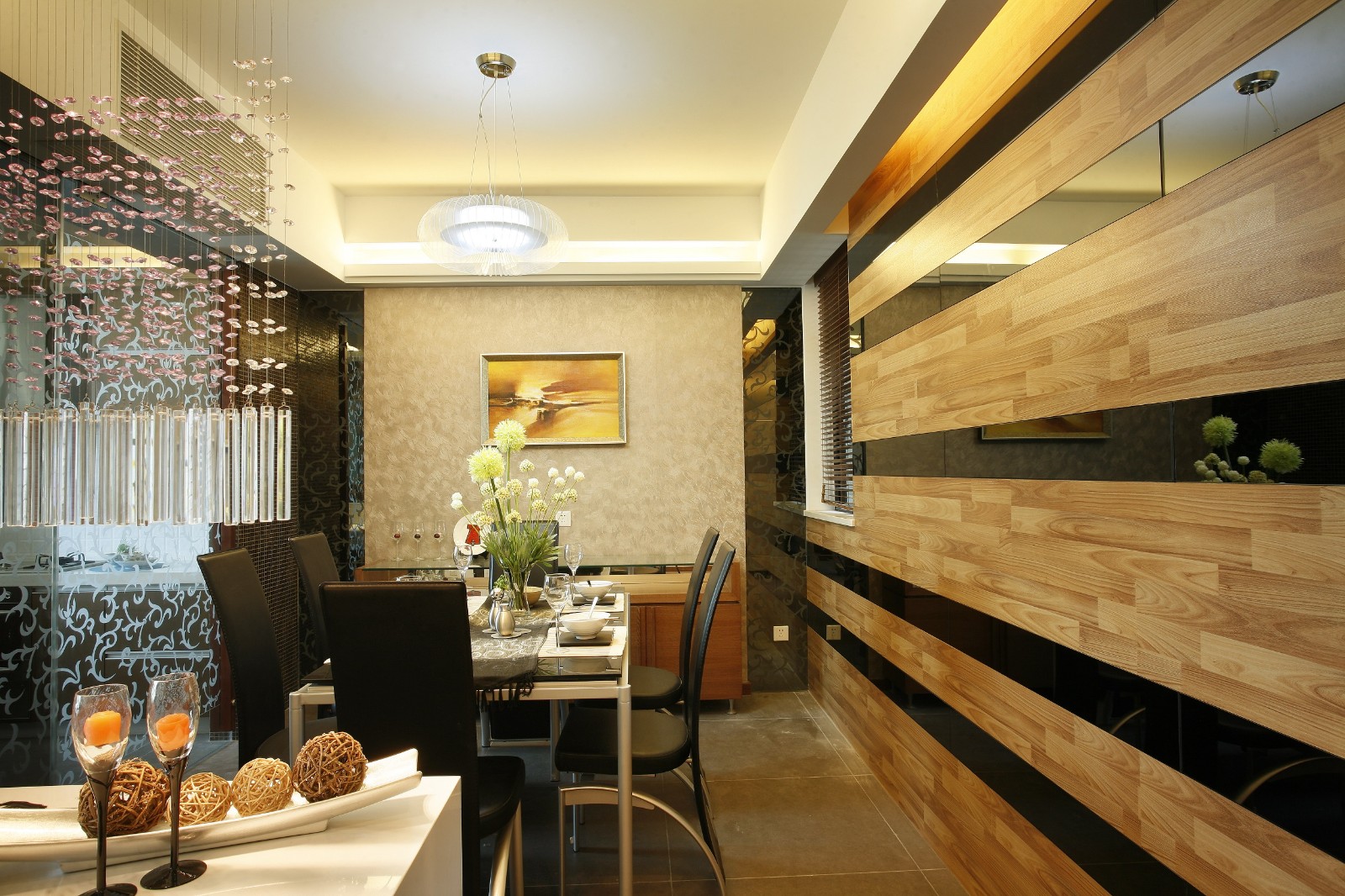 木质与墙布的背景墙让饭厅更加温馨!