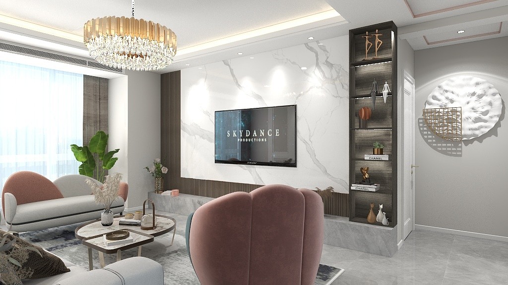 轻奢风格,镶玫瑰金色钢条,更有轻奢风的氛围