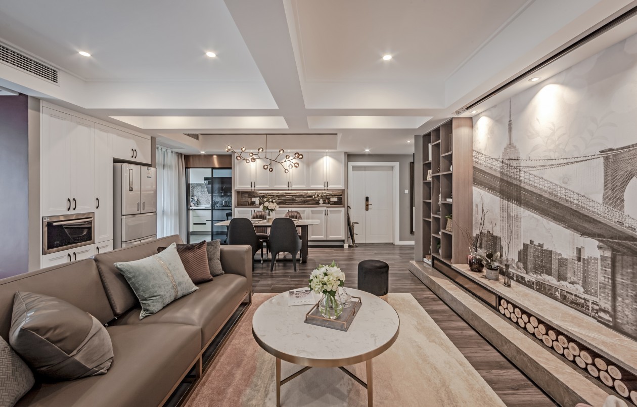 术感的单品突出点亮了空间 绿植的点缀、脏粉色单椅增强了空间的呼吸性 现代壁画与偏轻奢感的家具,小件装饰和单椅的美式造型 使艺术的跃动之美赋于空间之上 仿壁炉造型使空间看起来更有温度