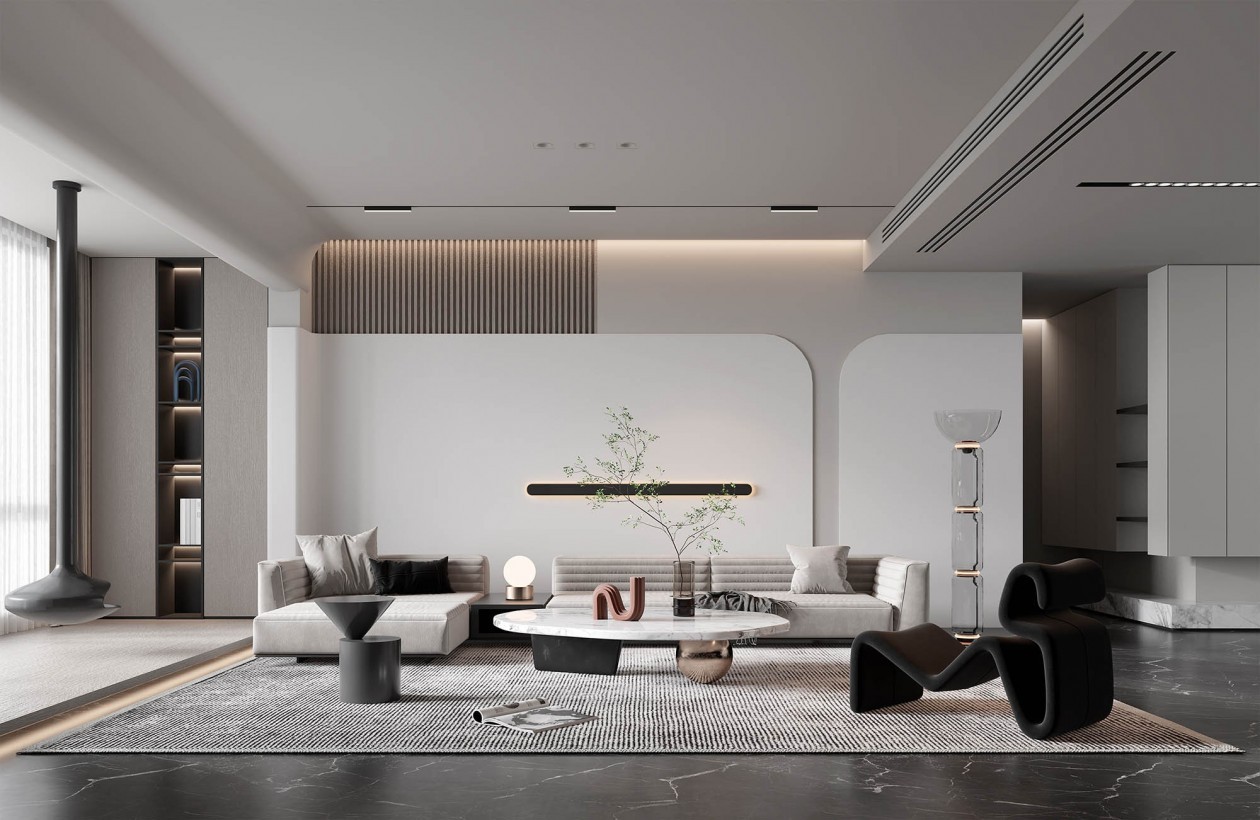 无主灯设计,搭配沙发背景,白色也可以很***。