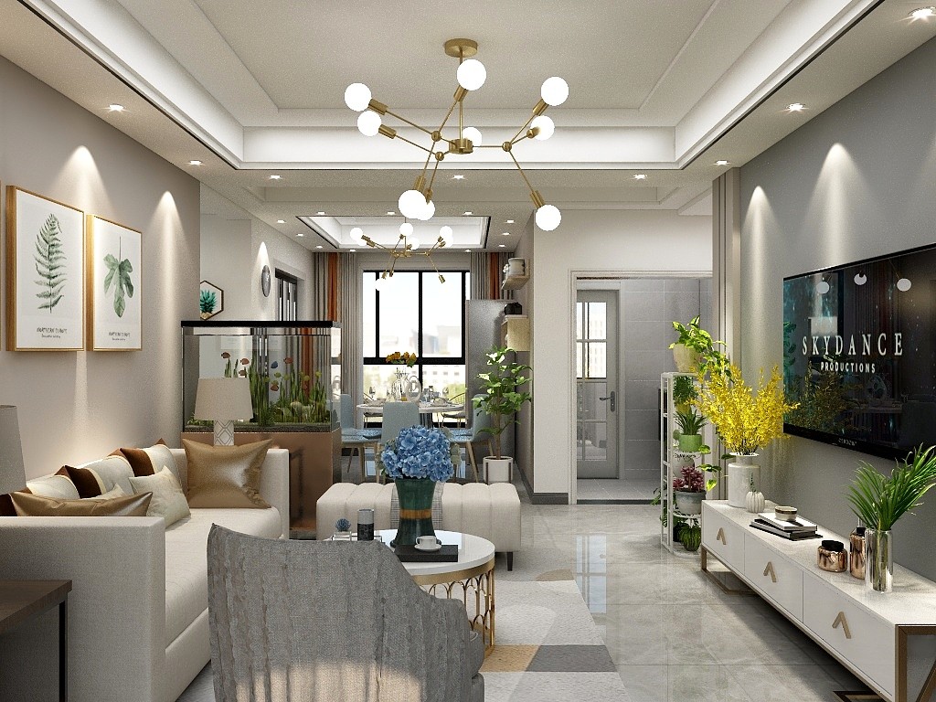 客厅背景墙用色漆加金属线条