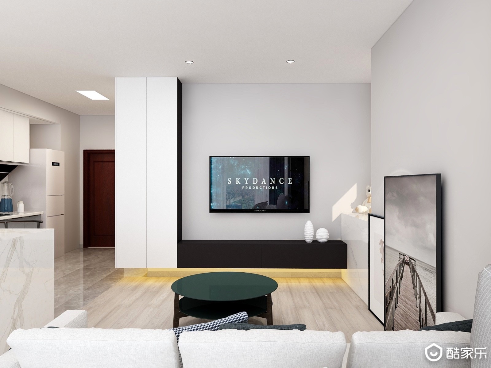 客厅比较大气简洁,尽显单身公寓的舒适感