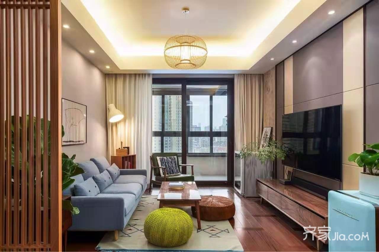 客厅虽小,但是搭配得甚是温暖。电视背景墙做了灰色硬包装饰,非常大气时尚。吊顶做了一圈灯带,暖暖的光把客厅打造的特别温馨。