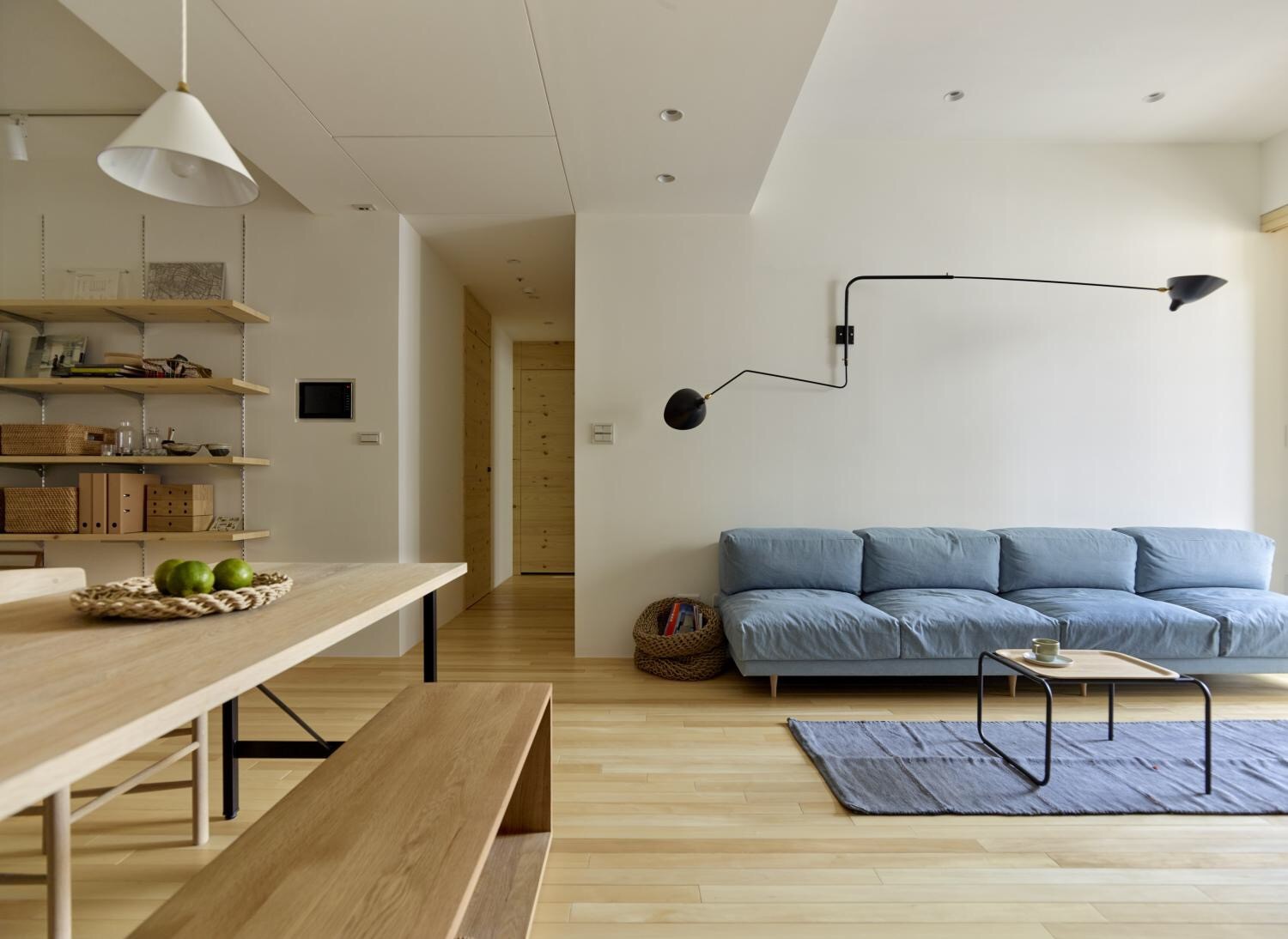 一入门即感受简约原木的舒适品味,正面迎来的收纳墙以预埋重柱方式,可随需要弹性配置墙面;而包覆窗户的木框与木质感收纳可为空间升温,一旁沙发则贴心提供阅读及观景区。