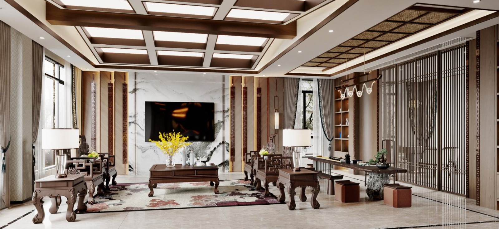 新中式风格的设计不拘泥于传统的中式元素