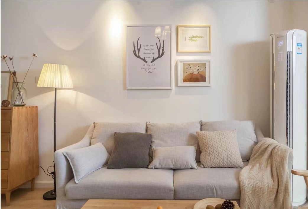 原木色的亚麻吊灯配上富有质感的斗柜,简单舒适