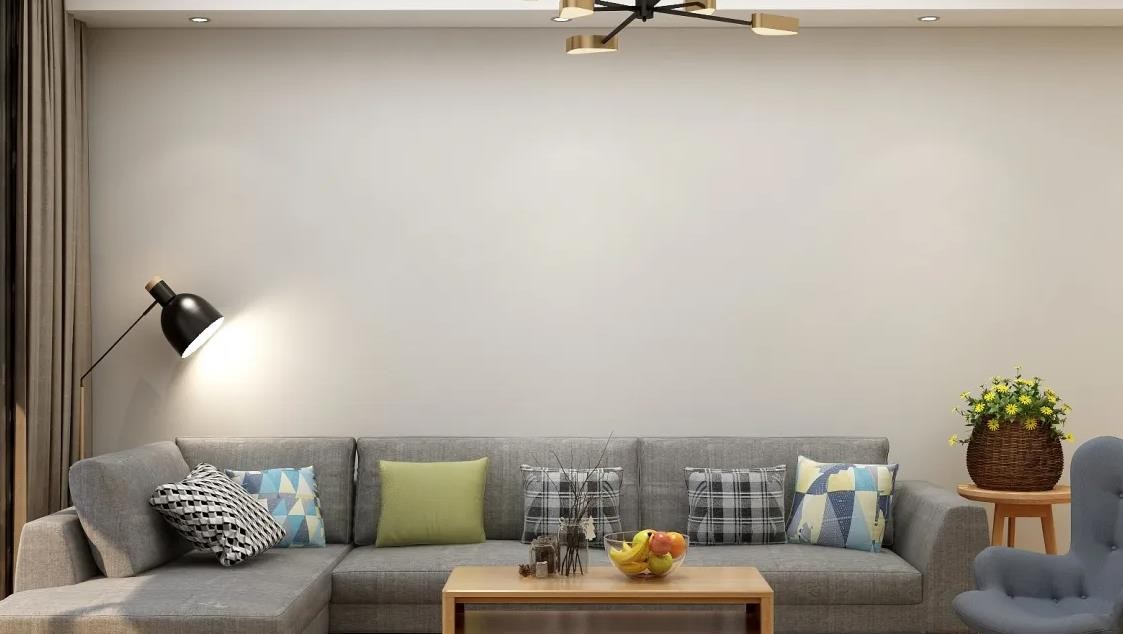 客厅采用浅色系背景墙,大面积的落地窗,增加了客厅的明亮度