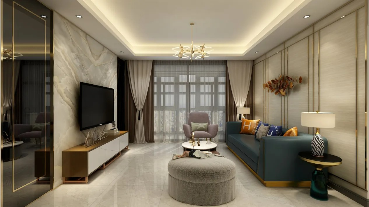 客厅采用暖色调,带有轻微的欧式造型来点缀