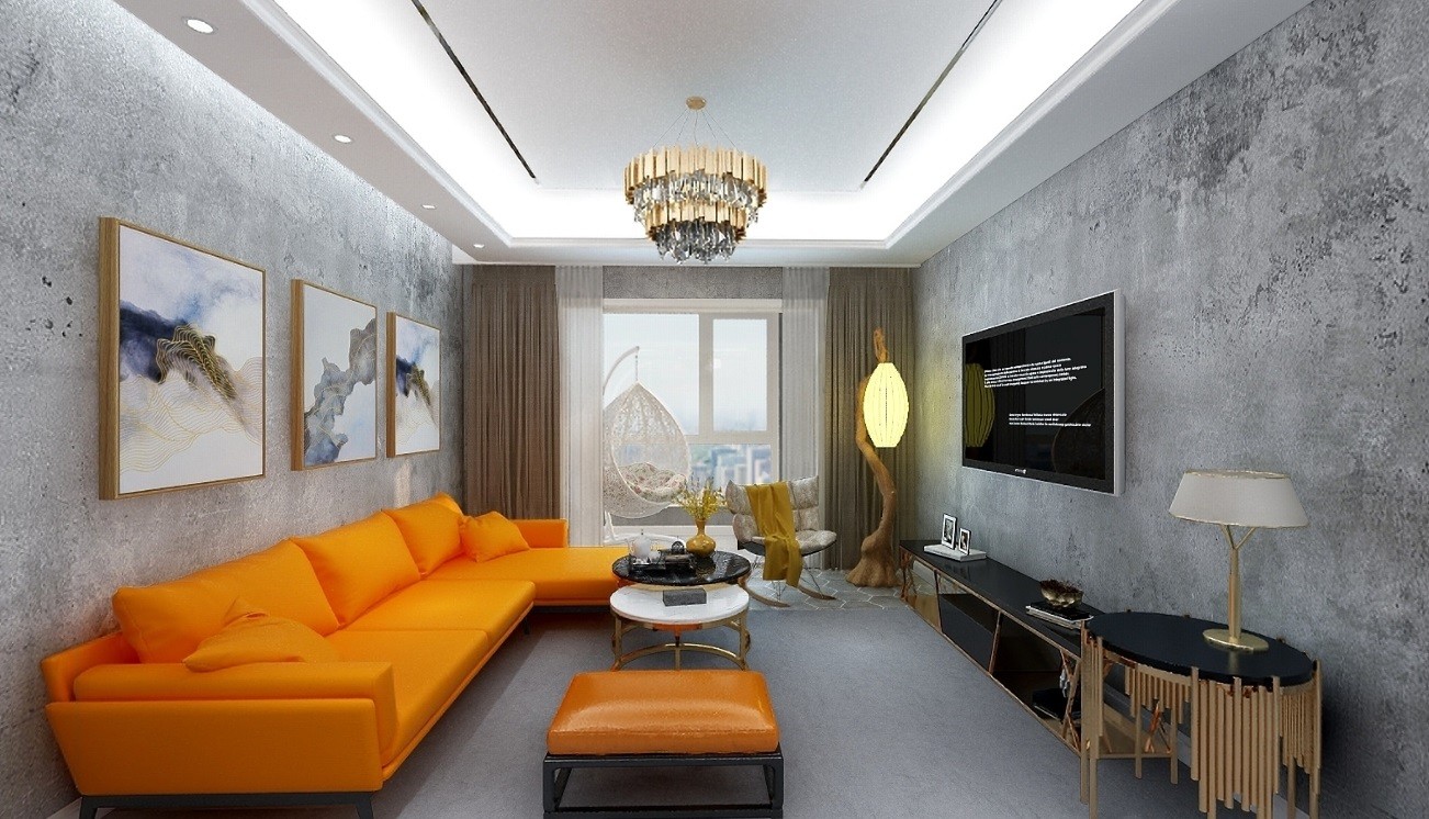 客厅墙面为仿水泥原墙壁纸