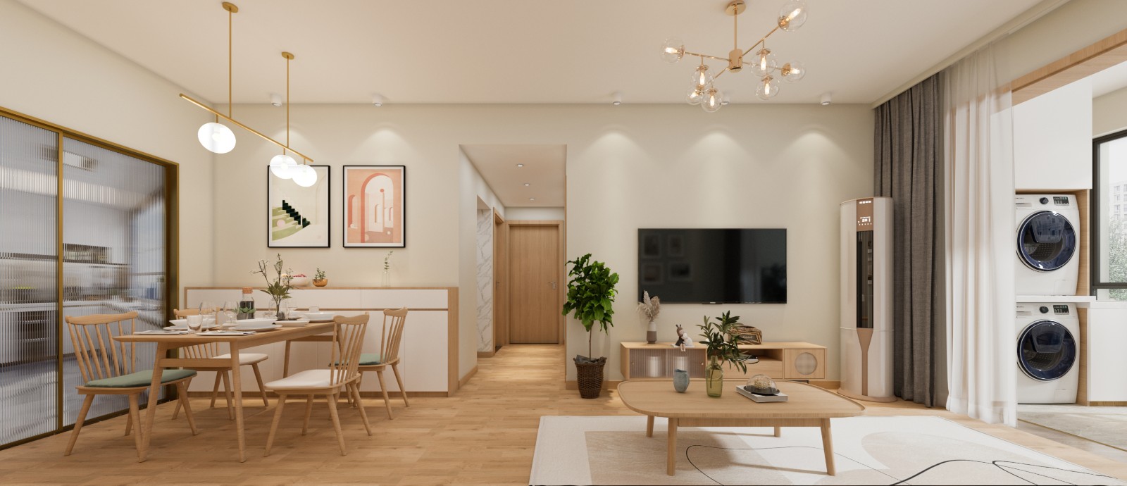 餐桌需要明亮的灯光才能体现出家的格调感。尤其是你喜欢浅色的餐桌椅,更需要灯光来点缀。不然昏昏暗暗的,会影响食欲和视力。