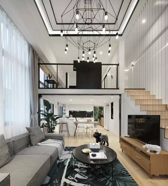 先看看房屋的整体效果,空间线条感和层次感都非常明显,简单的黑白配色加上精美的软装搭配,不累赘却也不单调,整体呈现出一种时尚、简约、大方的效果,彰显出满满的格调,看起来一切都是刚刚好。