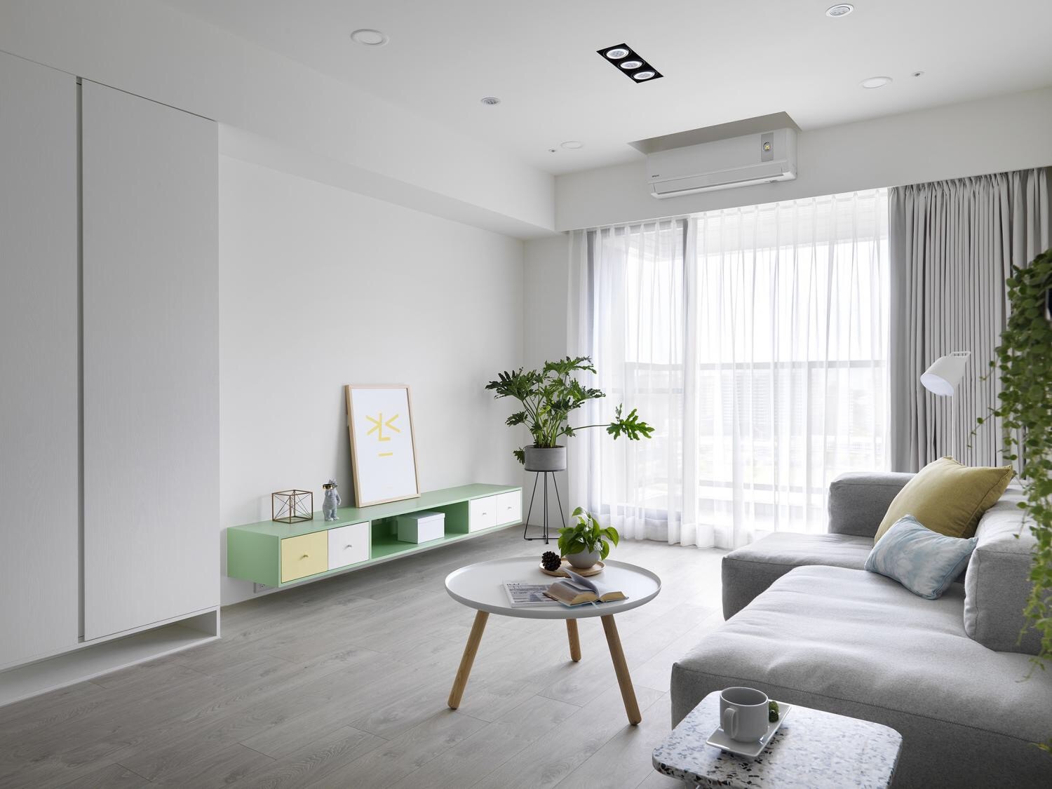 客厅通铺木地板,好看又耐脏,视觉上柔和舒适的感觉。