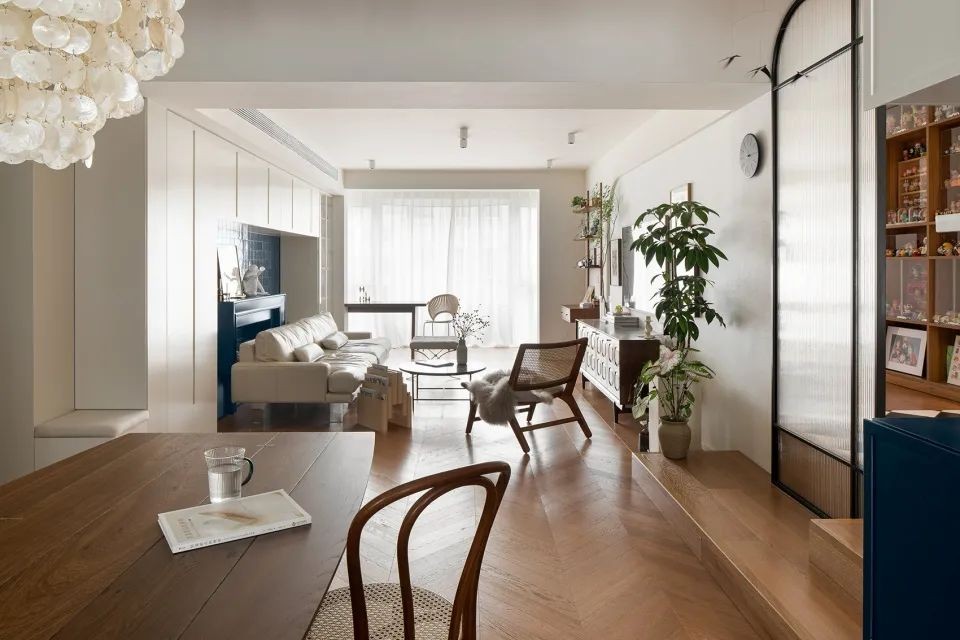 餐厅的元素与客厅的摆放大致都差不多,增加点绿植更有家的气息