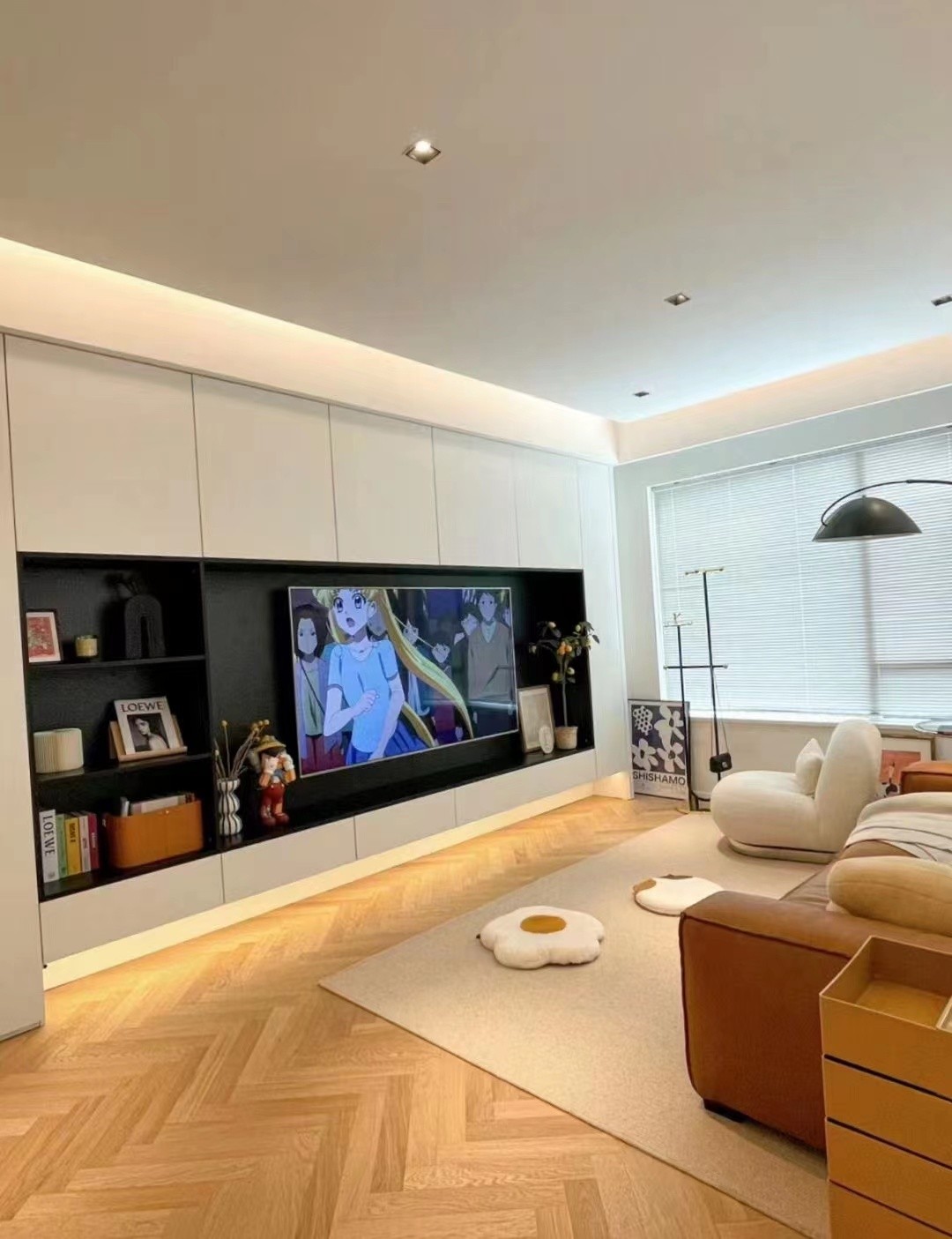 客厅电视背景墙做了定制柜,增加了室内收纳