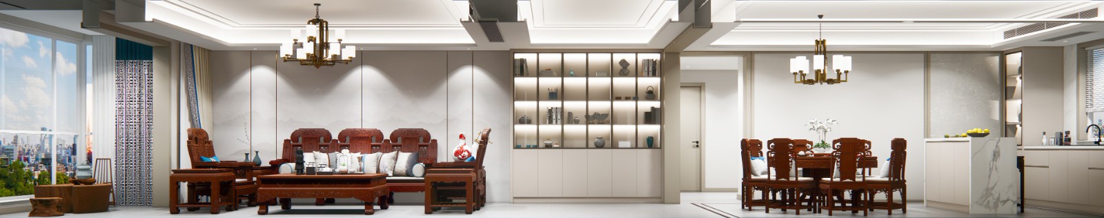 现代的墙板搭配传统中式的家具