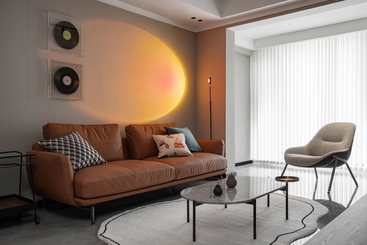 年轻人的客厅不需要中规中矩,硬装上,设计师把阳台纳入客厅,视觉空间更宽敞,***灰墙面显得更有格调,软装上,特意选购时下流行的网红灯打在墙面上氛围感十足