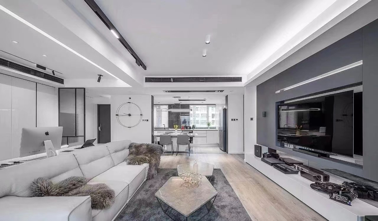 纯色简约一体化的厨房,视线所及之处皆是雅韵