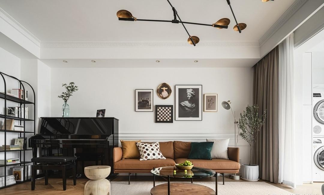 背景画配上棕色沙发不显单调,搭配出的效果更融入
