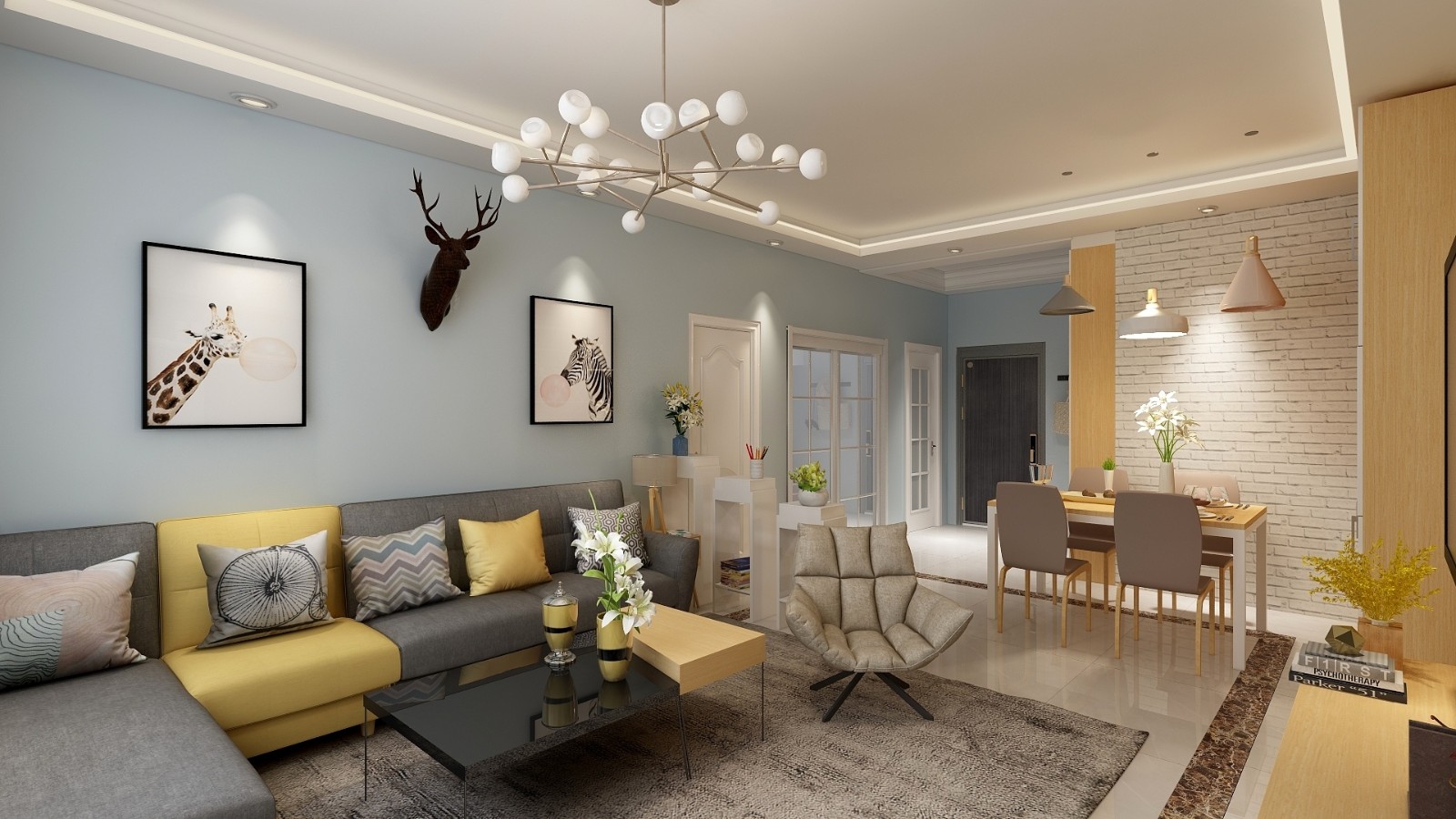 客餐厅区域合理规划,墙面做分色处理,让空间不显单调
