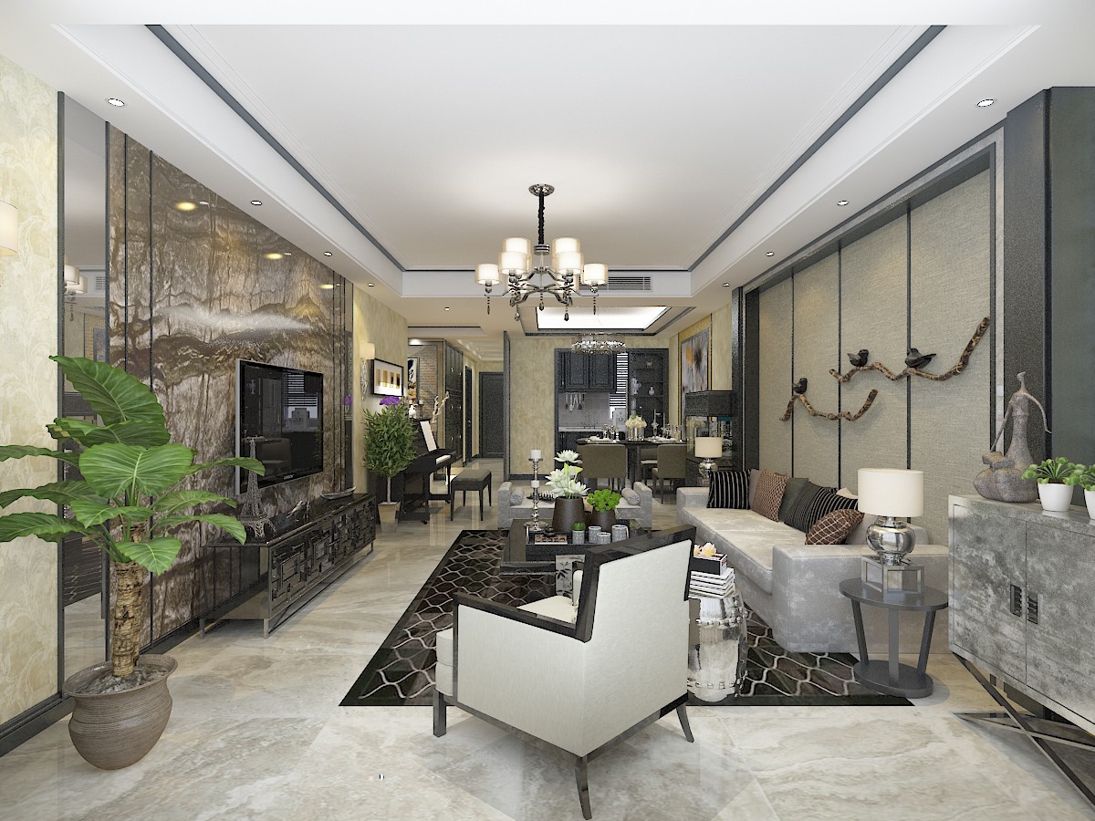 新中式风格设计,简约古典大方的设计,讲究轻装修重装饰的效果,家具深色家具体现了现代中式的感觉效果,给人庄重,沉稳,大气的感觉