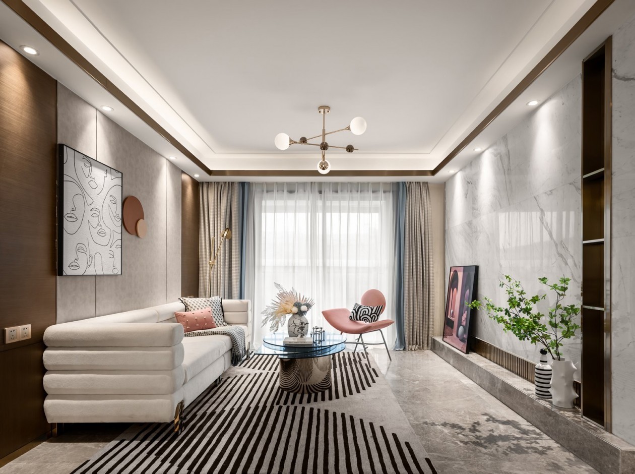 现代轻奢风格客厅,石材背景墙高贵典雅