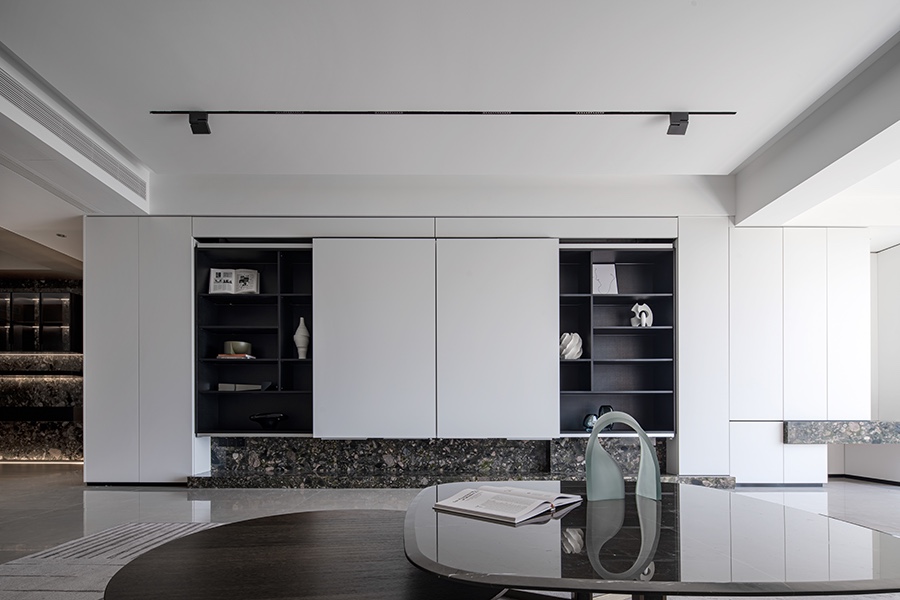 无序与有序 对称与不对称 都是相对的 设计师重新建立了 空间中独特的秩序感 通过对收纳空间的梳理 确保了居住后一直保持着刚设计完的状态