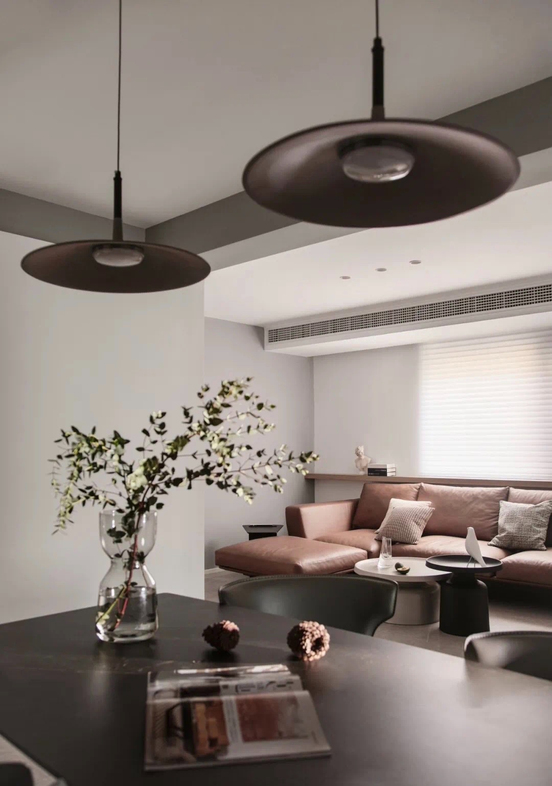 餐桌承实优雅不显笨重,包裹式椅背、硬挺的轮廓、全皮手工线理,彰显气质。