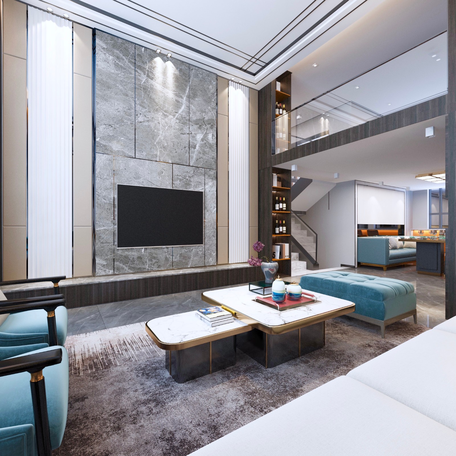 客厅我们做了一个挑空的处理方式,整个跃层就显得非常大气