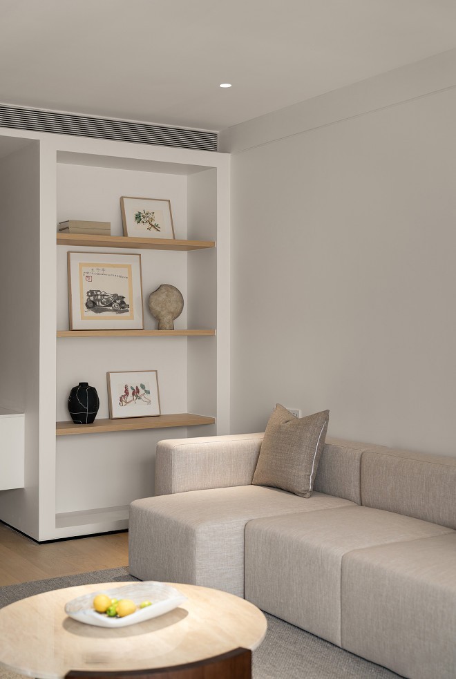 主卧使用大面留白处理,让休憩的空间不用承担太多负重,仅用一些温暖的布艺和灯光呈现安静舒适的氛围即可