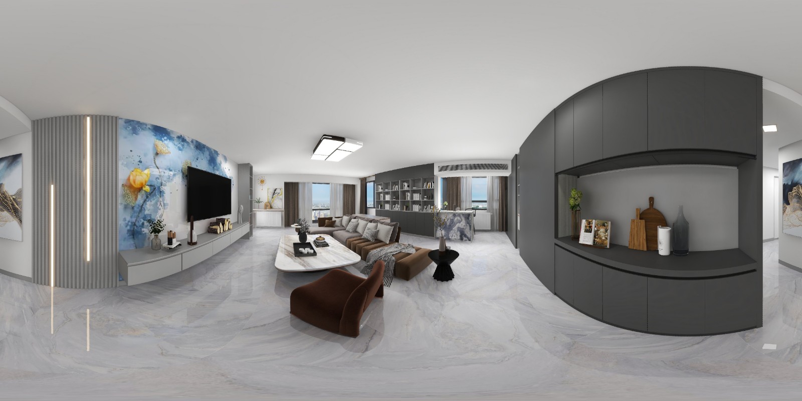 岩板背景墙加上格栅,客厅加了氛围灯光