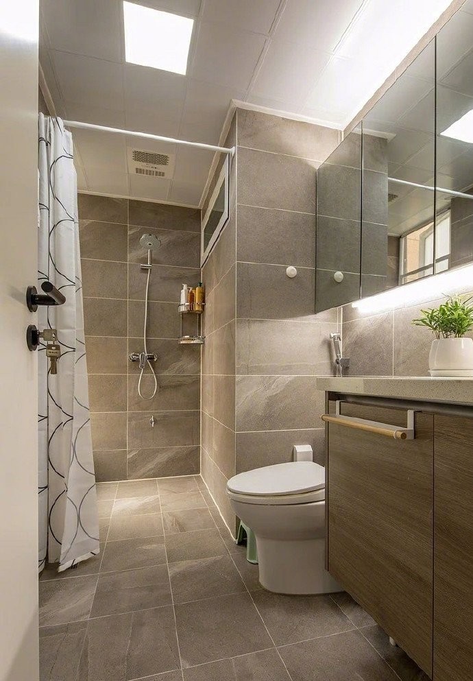 干湿分离,镜子的大面积运用,使得小空间有增大的视觉效果