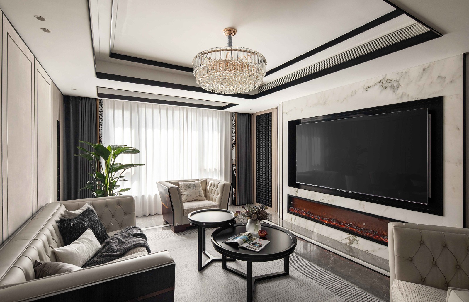 客厅以香槟色为底,淡雅平和,强调空间的一体性和饱满的流畅度光线、 气流成为居住者与空间***的连结继而彰显出家的阔大气度和严谨谦和的家风底蕴;
