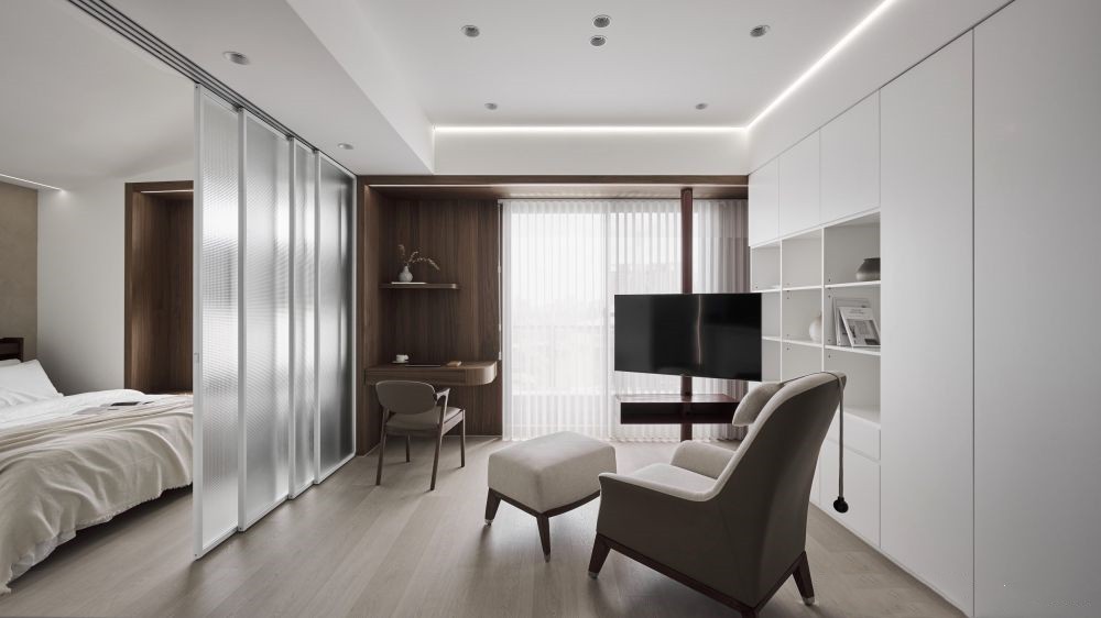 大面积的白色基调,更显空间的安静清冷,附以黑胡桃的点缀,整个空间充满了***感。