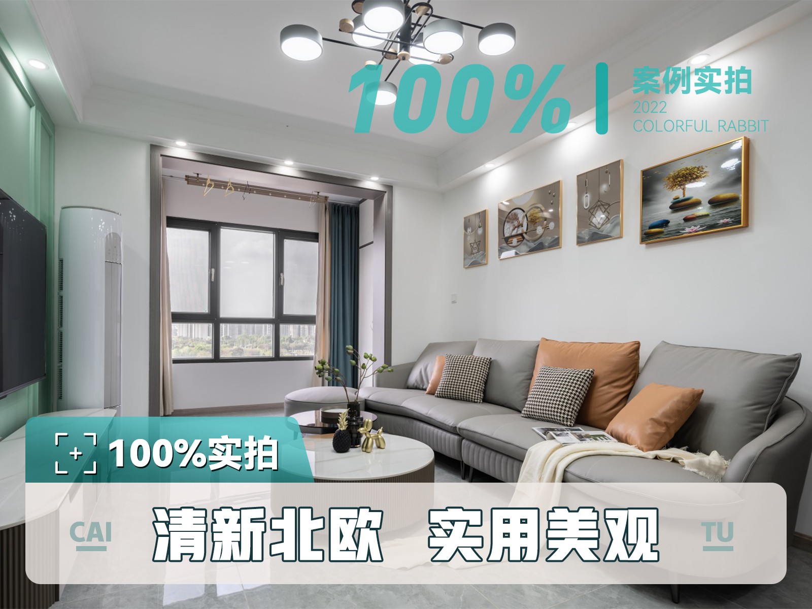 本案户型较为周正,整体通风采光都很好,所以未作户型调整。充分利用每个空间结构布局。 设计亮点:1.打通客厅阳台,扩大了客厅的空间感。 2.入户左侧一整墙的到顶鞋柜,收纳空间满满。 3.空间色彩的使用。