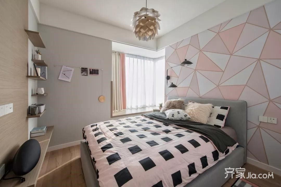 卧室以灰白色调为主,优雅素净,搭配深色的床与床头柜,让人感觉非常的沉稳、安定。