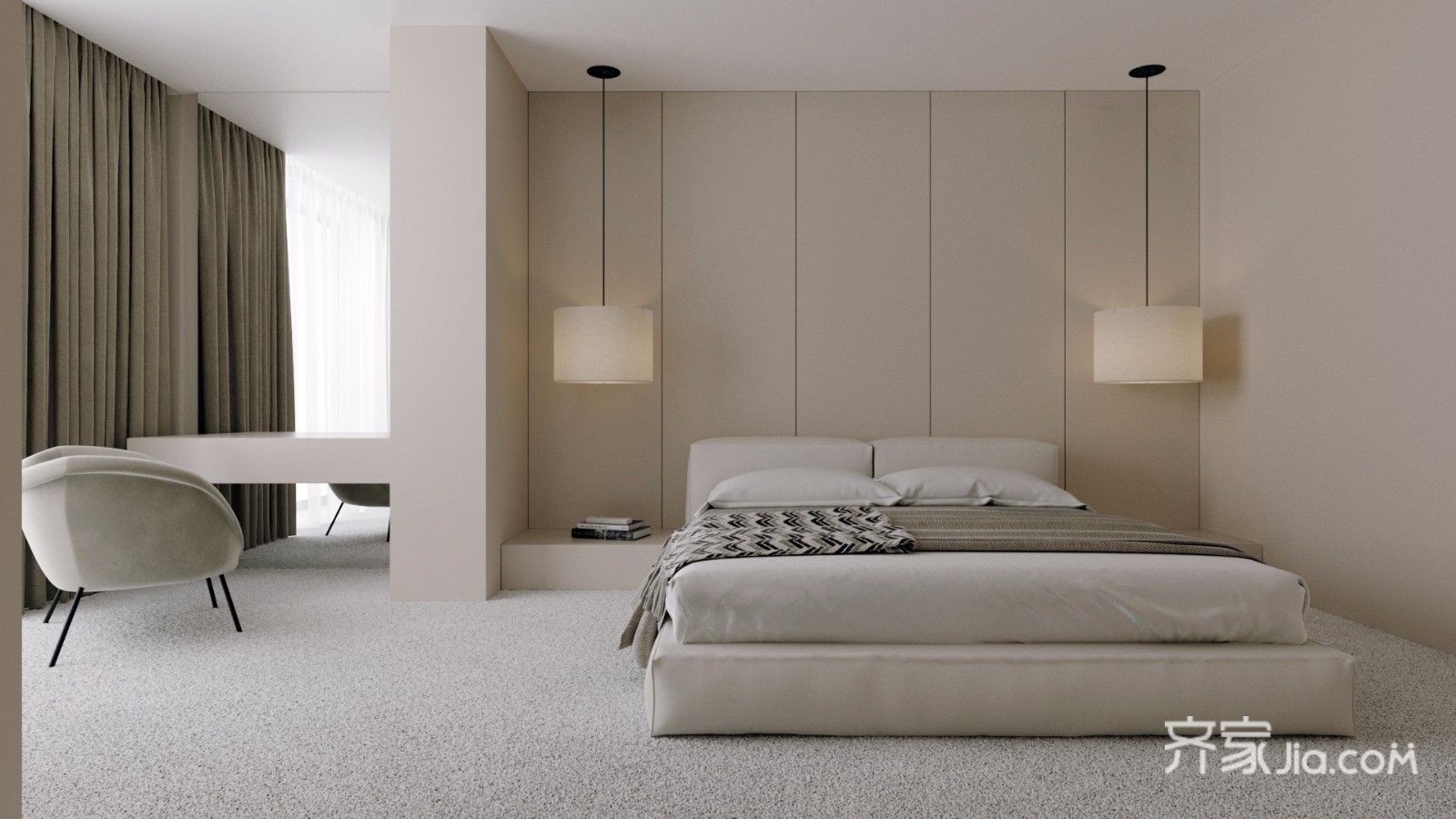 主卧没有多余装饰,暖色调灯管,温馨而典雅