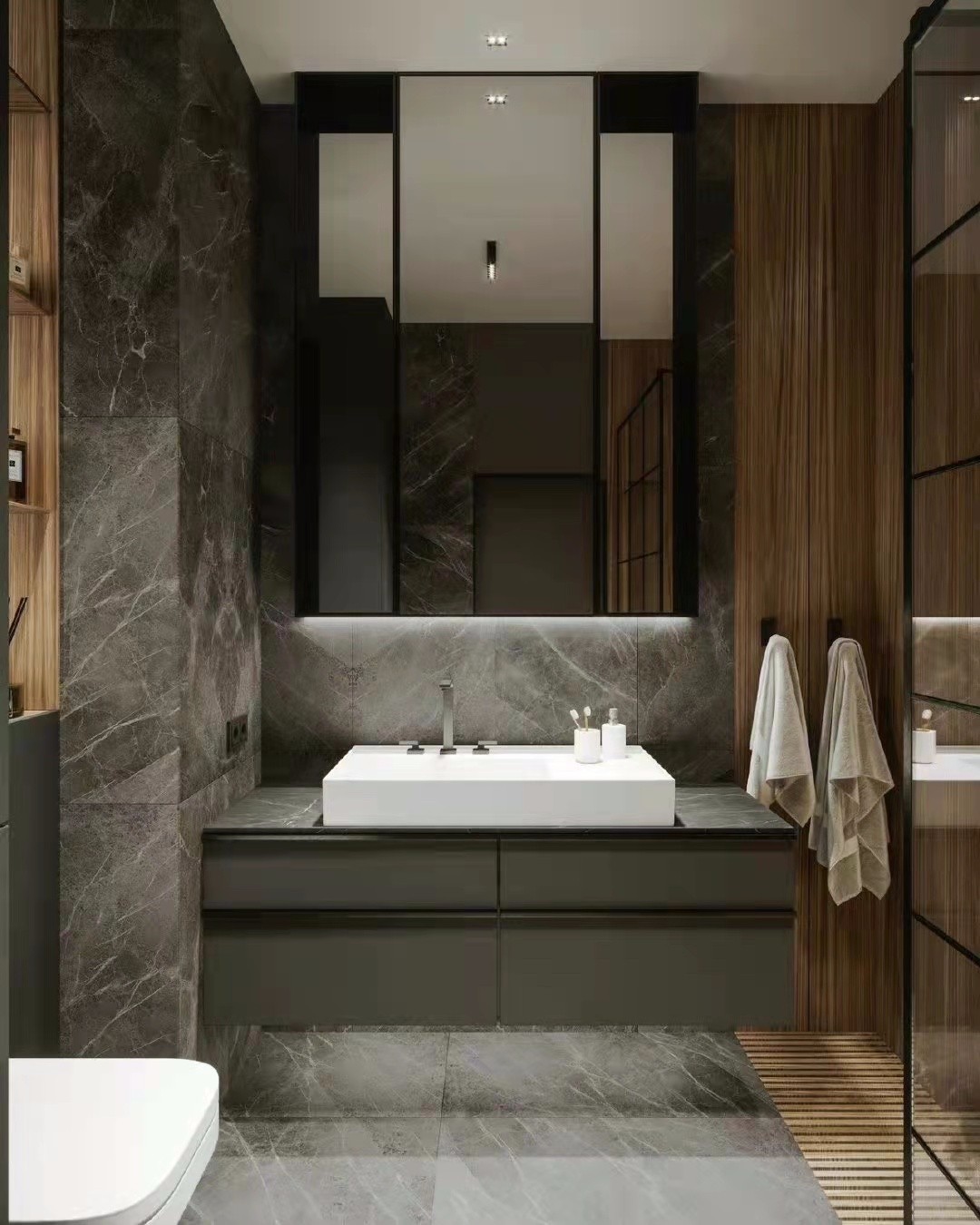 卫生间干湿分离,浴室柜镜柜下留灯