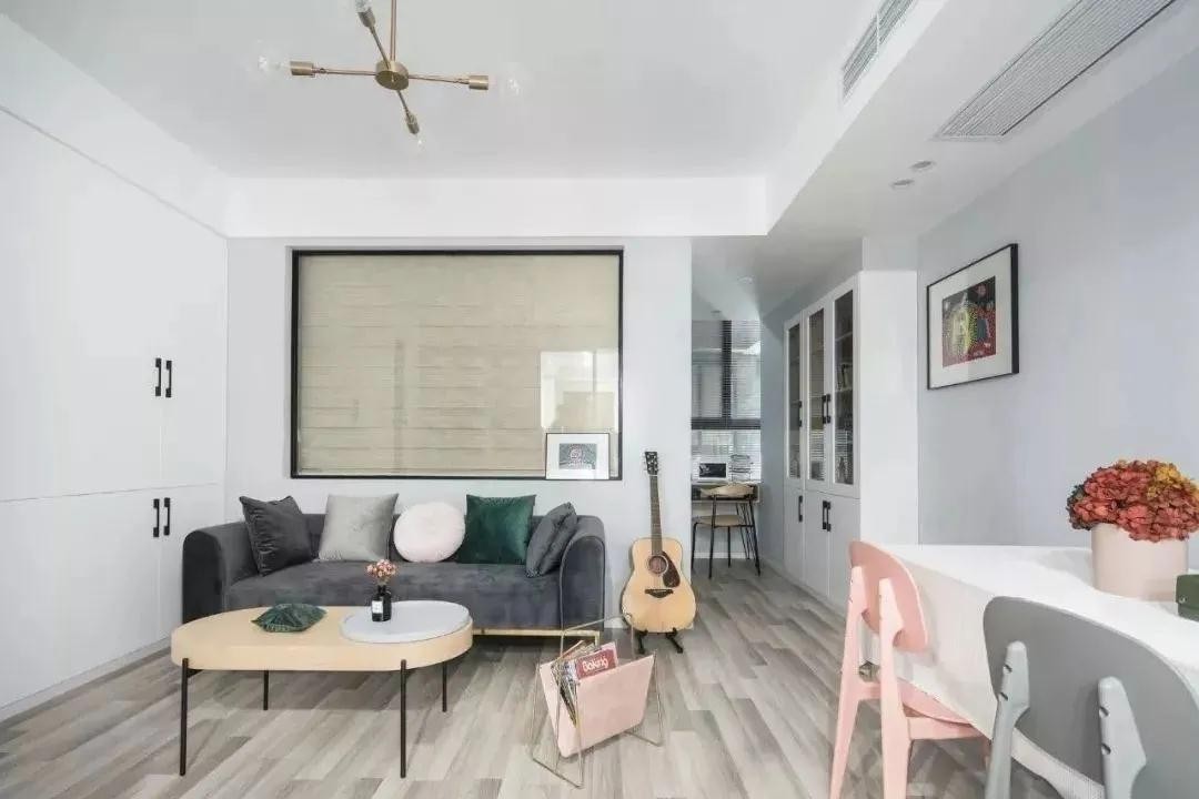 厨房、客餐厅、卧室都很明确的划分出来了!整体风格选择了北欧风,淡雅而又精致!