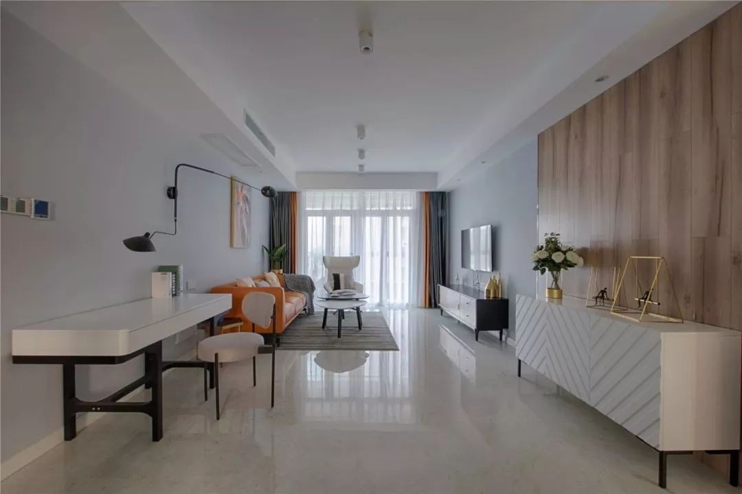 整个客厅不仅具备了会客功能,还具备了办公的功能,实现了一个空间多功能的设计。