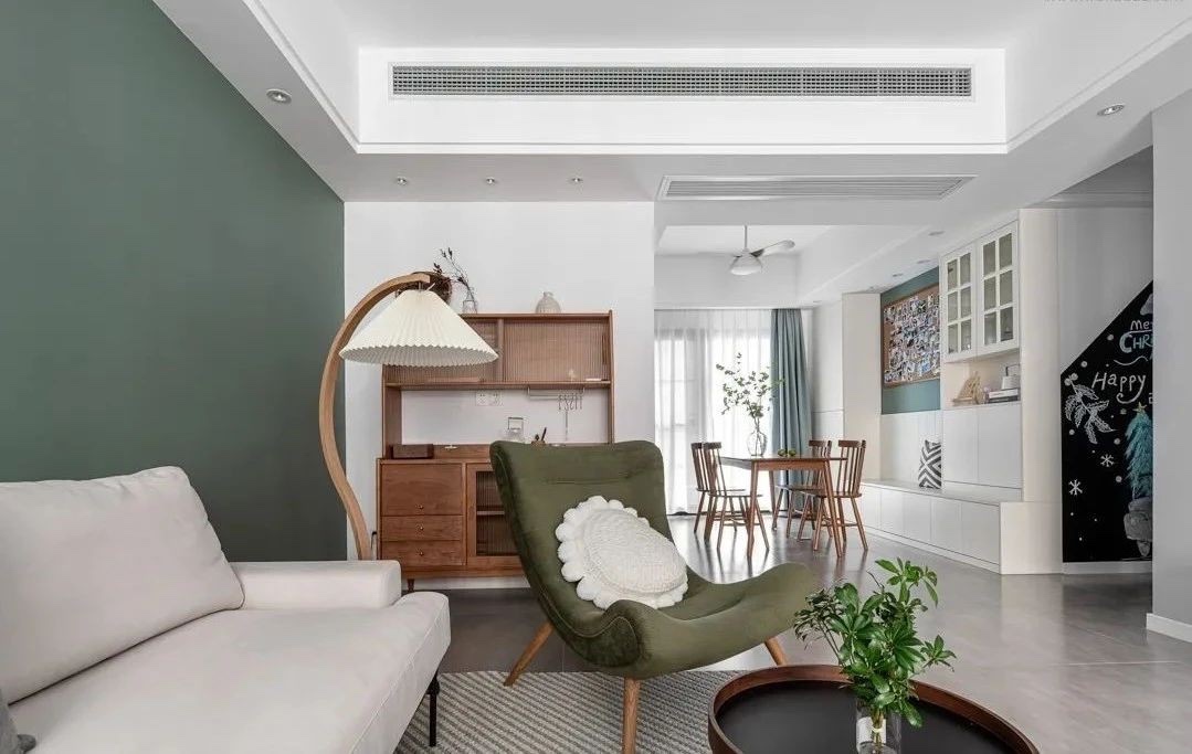 白色的柜子加入木色家具的搭配,让整体的效果更加自然大气,更有空间层次感。