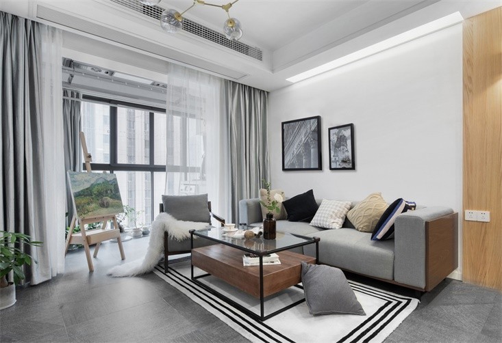 客厅没有过多的装饰,简洁的白墙,高低错落的壁画装饰,让墙壁不显得单调